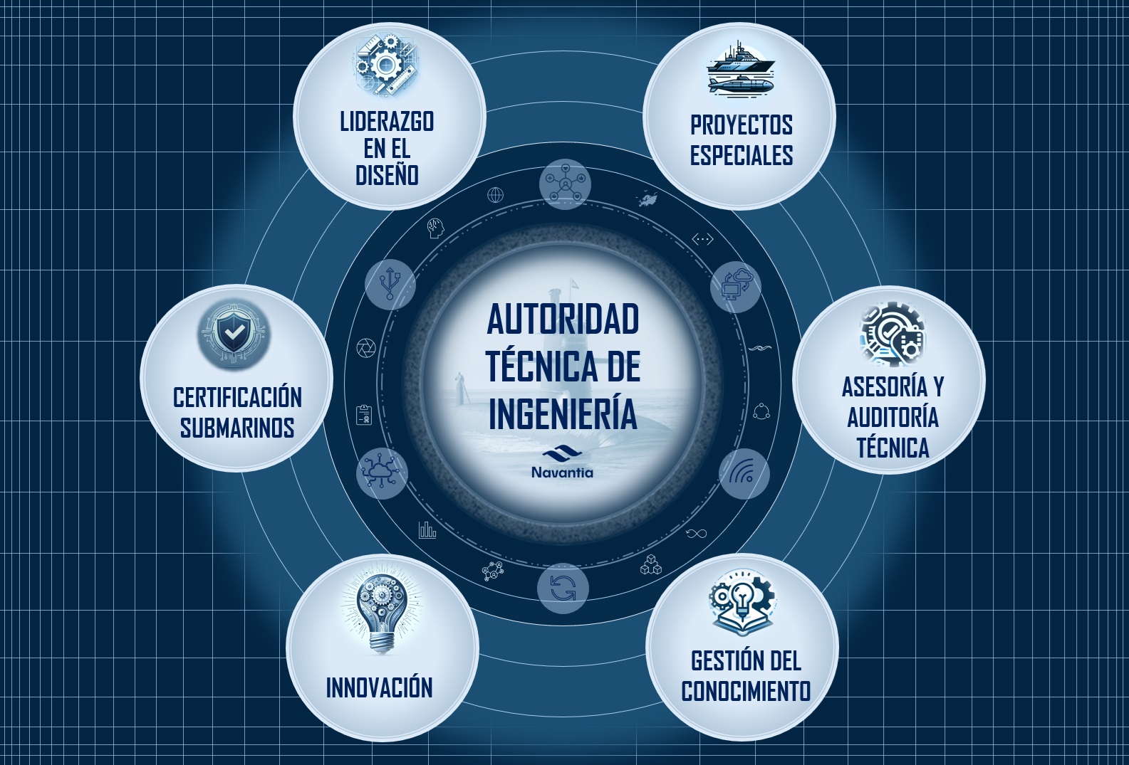 At Navantia, the Technical Engineering Authority (ATI) is at the heart of technical excellence and innovation. Our mission is clear: to lead with knowledge and ensure that every Navantia project not only meets, but exceeds expectations. Below are the capabilities that make ATI a benchmark in the sector.