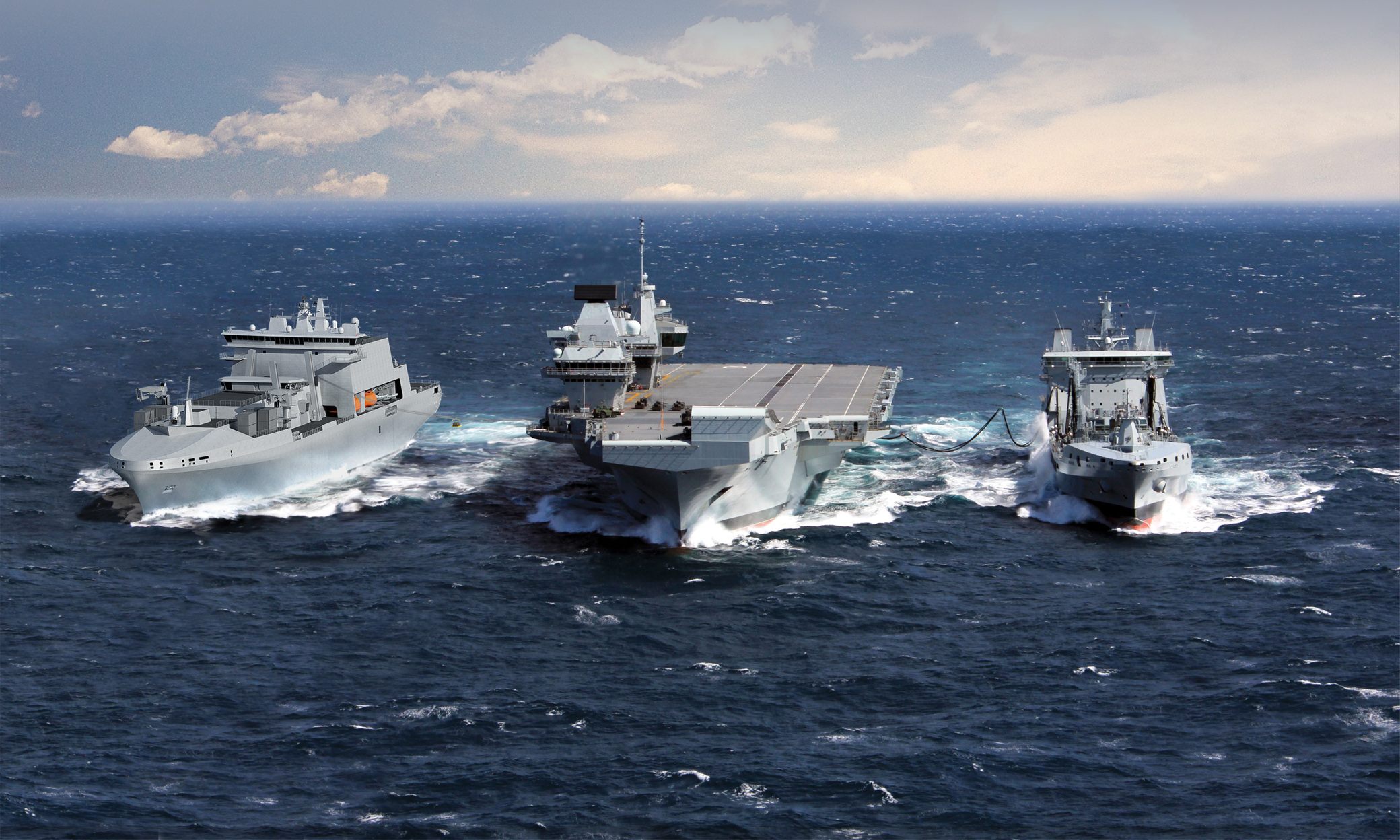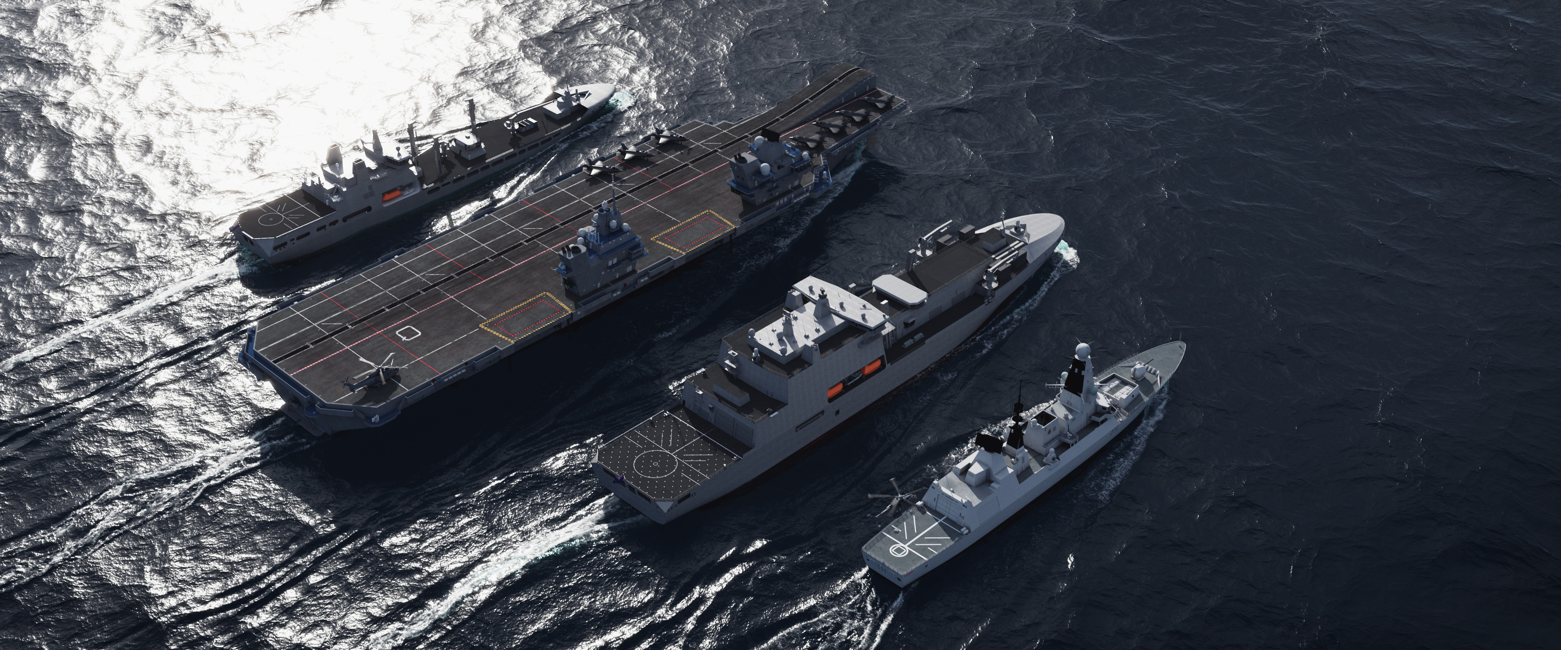 Three 216‑metre ships for strategic resupply At 216 metres long, these solid “logistics giants” will supply munitions, spare parts and provisions to the UK’s carrier strike groups, enabling extended naval operations without returning to port. Their flight decks will accommodate Merlin and Wildcat helicopters, expanding vertical replenishment capacity at sea.