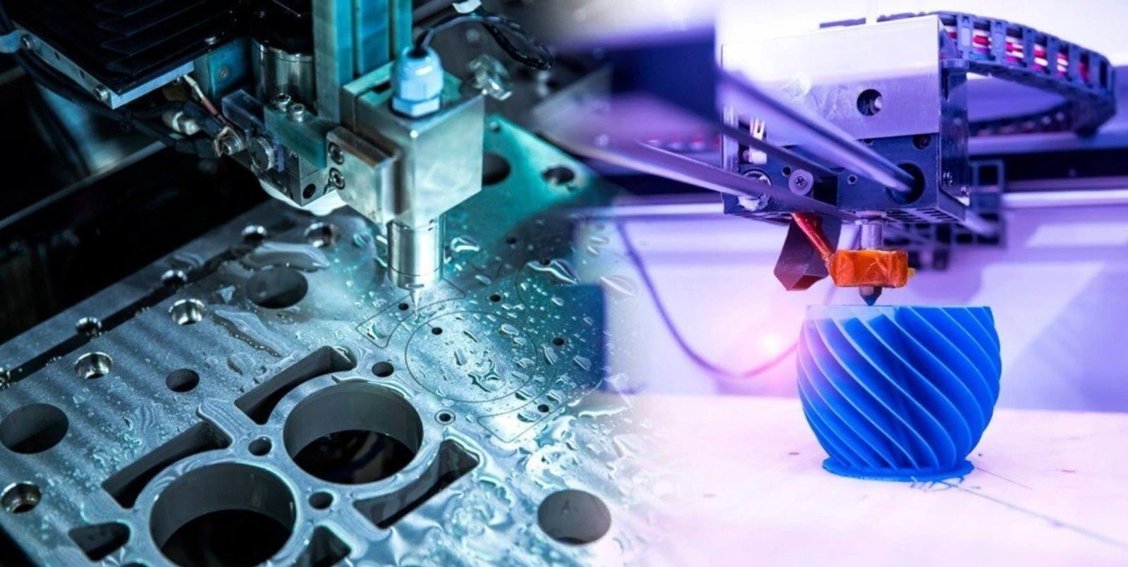 Polymeric and metallic Additive Manufacturing equipment with different technologies, sizes and materials.