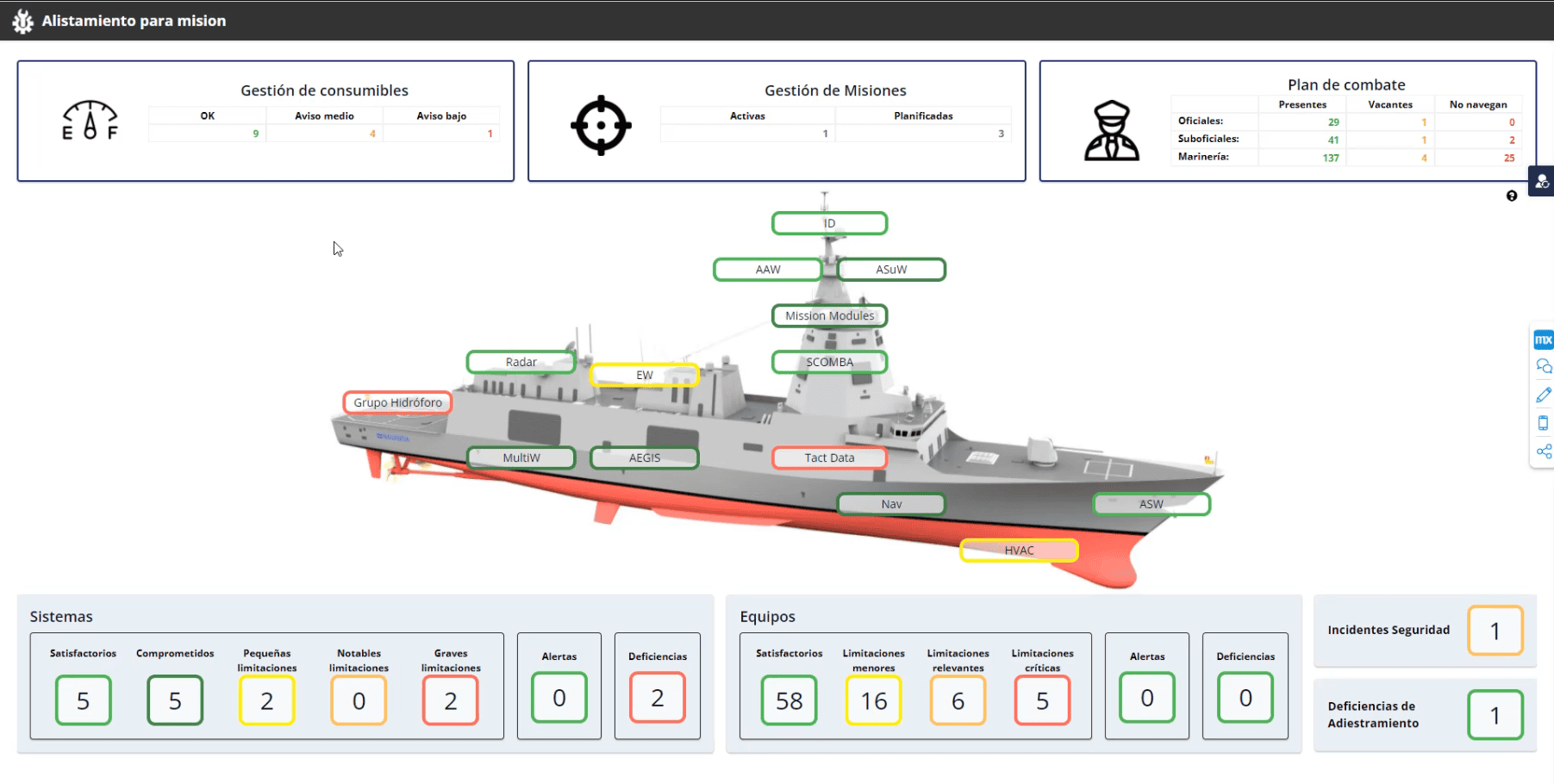 Support in the Configuration of the Vessel for the Conduct of Missions