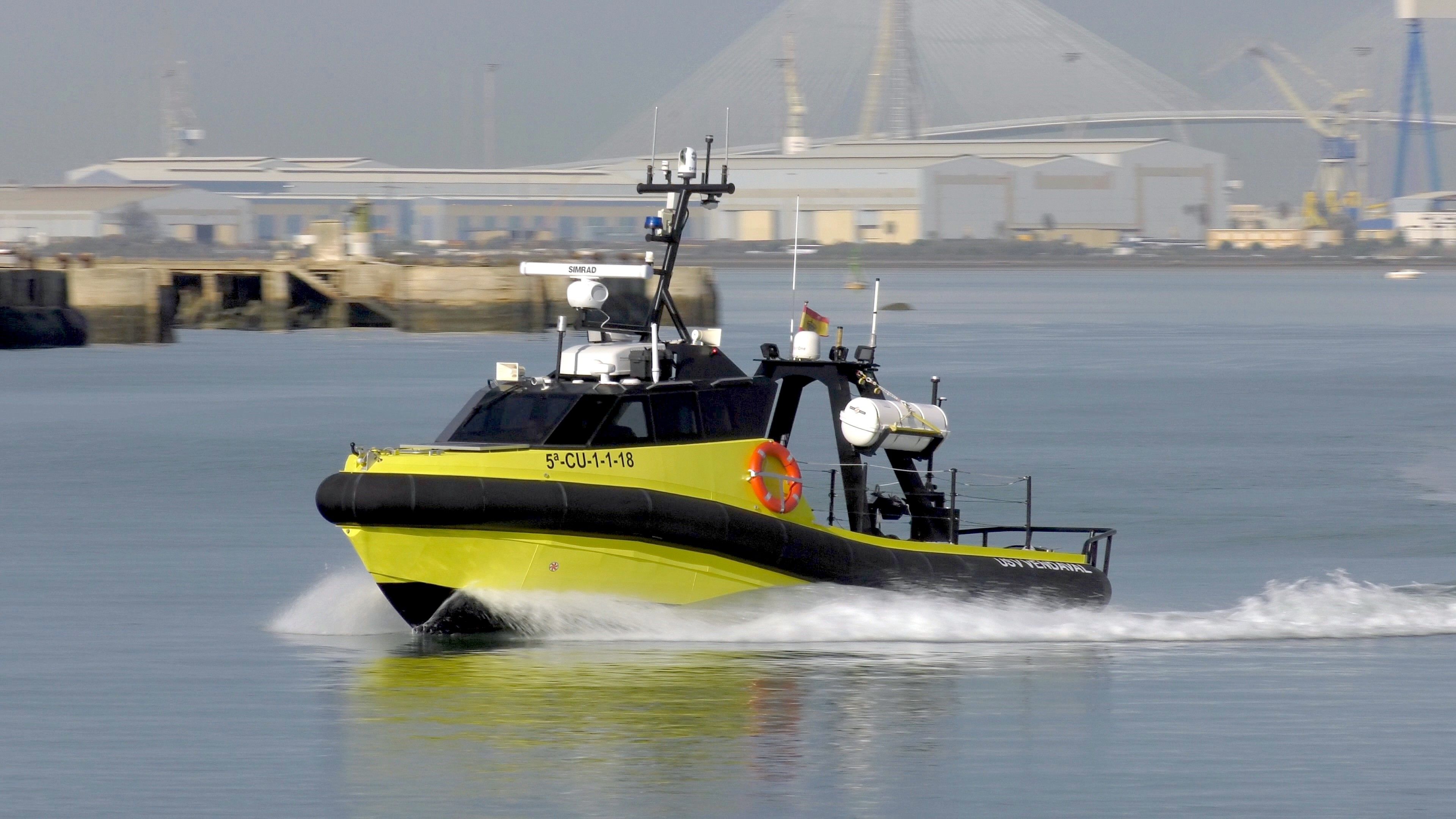 Navantia's unmanned vehicles seek to develop technology that increases the autonomous capabilities of both civil and military systems. The USV Vendaval is the first unmanned surface vehicle commercialized and operational in real missions in Spain. It incorporates sensors for autonomous navigation and mission equipment such as fluorometer, weather station, tow hook, flare launcher or life raft, all remotely operable. It is unsinkable, has an aluminum hull resistant to high temperatures and a refrigerated cabin for two crew members.